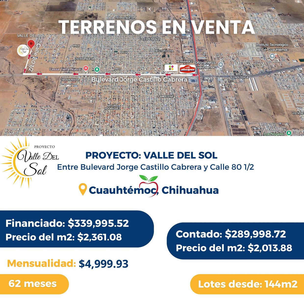 Valle del sol es una nueva lotificación en cd. Cuauhtémoc con una ubicación estratégica para espacios comerciales o casa habitacional, sobre la avenida Bulevard Jorge Castillo Cabrera y calle 80 1/2